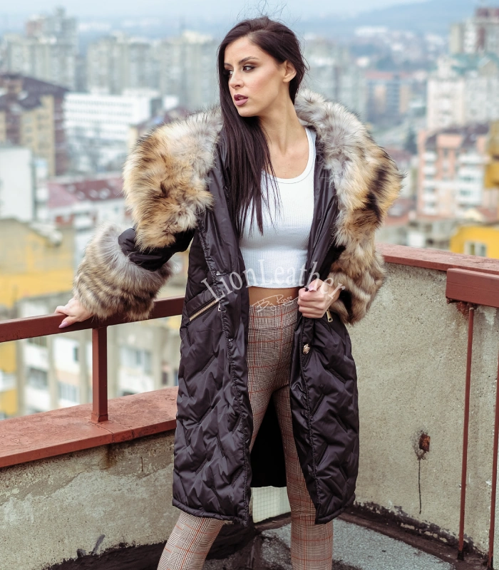 Elegantni zimski kaput sa bogatim prirodnim krznom - Black 01