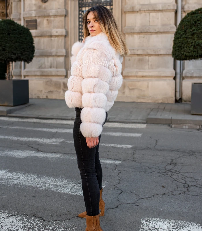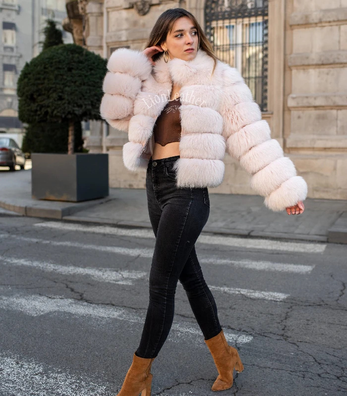 Luxury bunda sa prirodnim krznom - Baby roze