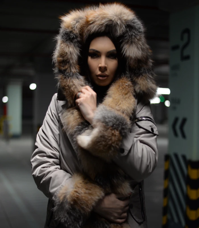 Nepromočivo platno obezbeđuje zaštitu od kiše i neprijatnih vremenskih uslova, čineći našu parku savršenim saveznikom za sve vaše avanture u prirodi ili gradskim šetnjama. Prirodno krzno na kapuljači i rubu jakne dodaje sofisticiranu notu toplote i elegancije, pružajući vam luksuzan osećaj i ističući se kao vrhunski detalj.